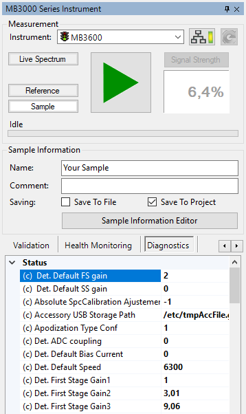 The advanced diagnostics information is also saved to files with the ABB-FTWS100 file format. To separate this information from the regular labels of a sample, the advanced diagnostic details of a file will be display in a discrete Diagnostics Tab. Please refer to the chapter Tabs and Tab groups for further details on tabs.