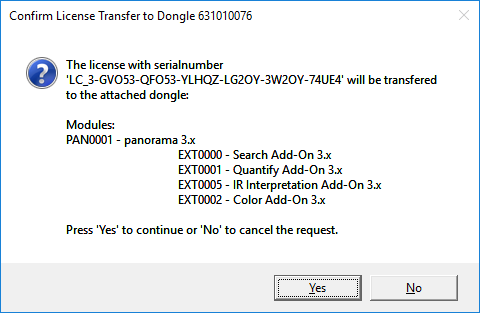 This Panorama.lic file is deleted during completion of the license transfer, since the information is moved to the USB-Dongle and the file is no longer needed.