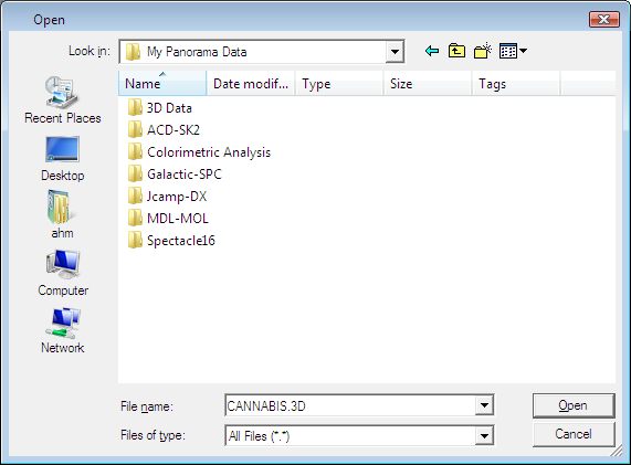 The File Open dialog lets the user specify the drive, directory, and the name of a file to open. The following illustration shows a typical explorer-style File Open dialog box. The dialog may appear different on your computer, the actual appearance depends on the operating system you are using.