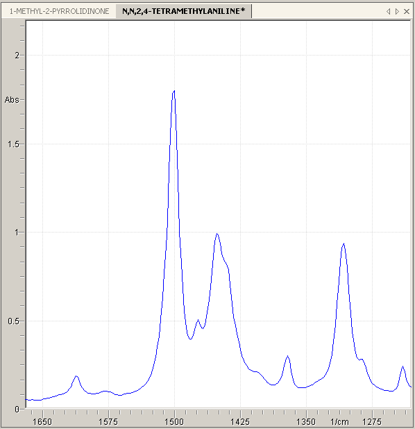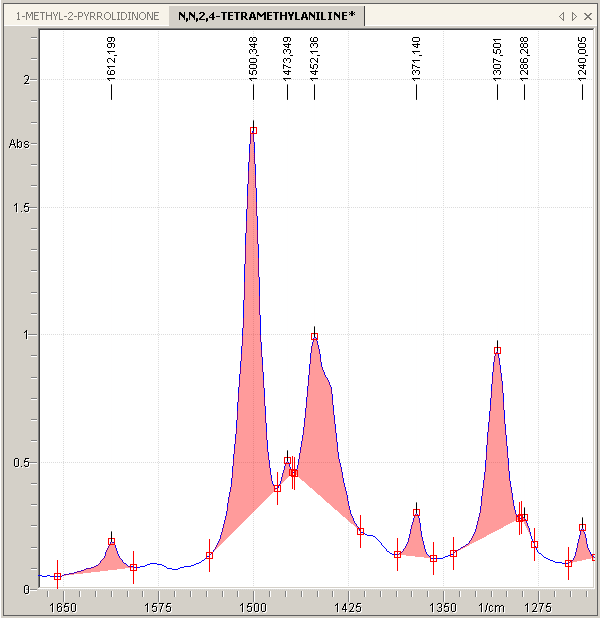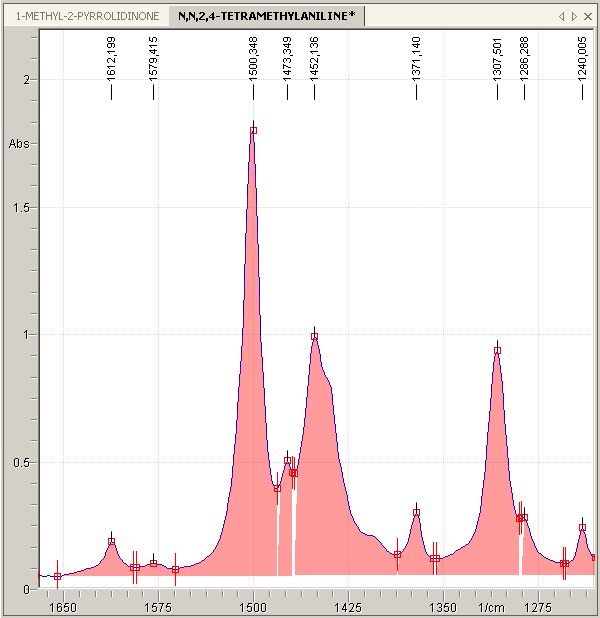 The following excerpt from the N,N,2,4-Tetra-Methyl-Aniline IR spectrum is submitted to peak picking in the following. The spectrum excerpt looks like this: