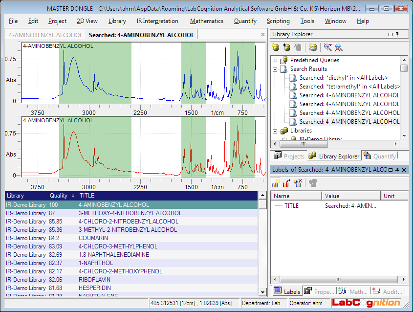 In every day work of an analyst analytical data, especially spectra, need to be analyzed and compared to already evaluated material. In order to assist the analyst in his work and save analysis time or prevent wasting time for duplicate analyses, powerful search tools are available in the software. They quickly provide results on similar data, which have been previously evaluated.