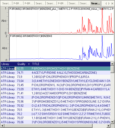 Analysis of substance mixtures is a difficult task for the analyst or spectroscopist. The software helps him to find suitable compounds contained in a mixture by spectrum search on custom or commercial libraries. Once the analyst has discovered and identified one of the substances included by comparing the spectrum of the mixture with spectra found in a library, further investigation of the "remaining" spectrum might be interesting. Therefore, the software offers the Search residual spectrum function: