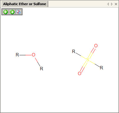 Some functional group representations cannot be depicted by only one particular molecule, but a set of various molecule fragments representing all possible chemical environments. In this case multiple molecules are displayed in the view: