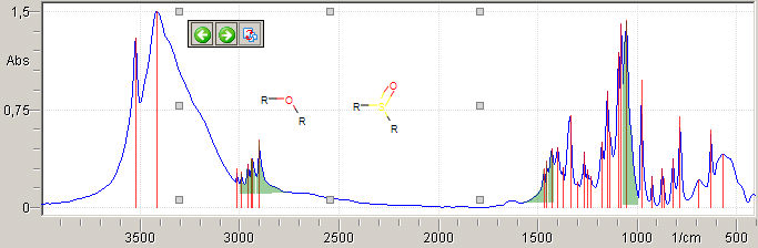 In the spectrum interpretation result, a molecular representation of the active functional group is displayed in the spectrum view: