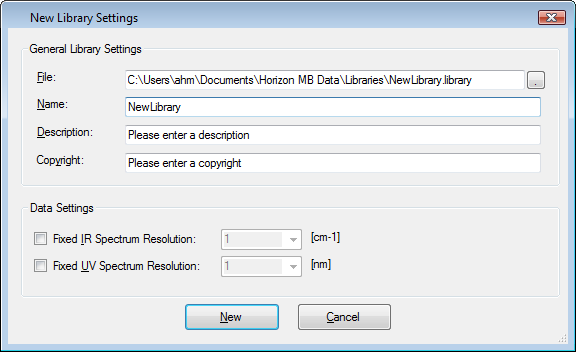 New library settings dialog