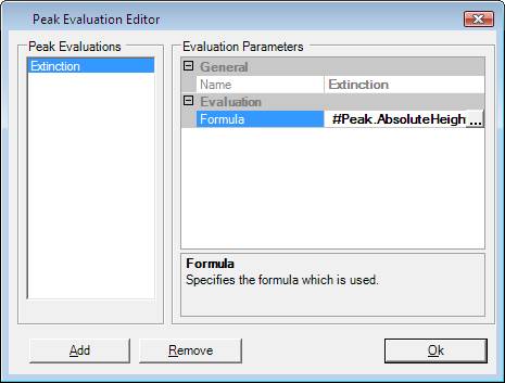 In the Peak evaluation dialog, click the Add button to add a new evaluation method.