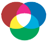 The additive mixture of the three primary colors red, green and blue in different portions give a resulting color. Adding all colors together in equal portions creates white. That is, all visible wavelengths are transmitted back to the eye. Additive colors are used for lighting, video, and monitors. The following figure shows additive color mixing: