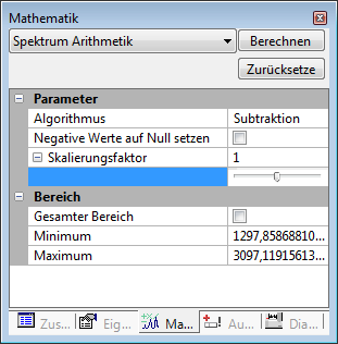 Enable or disable the Full Range checkbox, if you like to apply the arithmetic function just to a spectral region or the whole spectrum area.