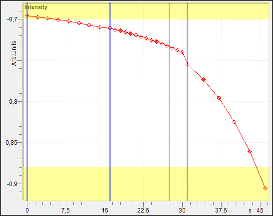 In addition to trend curve, data point markers will be plotted according to the Every Nth sample setting in the parameter panel / reaction wizard (step 5). The data point markers are also correlated to the sample selection in the Report Grid and samples can be directly selected in the trend view. Please refer to the section Sample Selection in the chapter Operations for a detailed description.